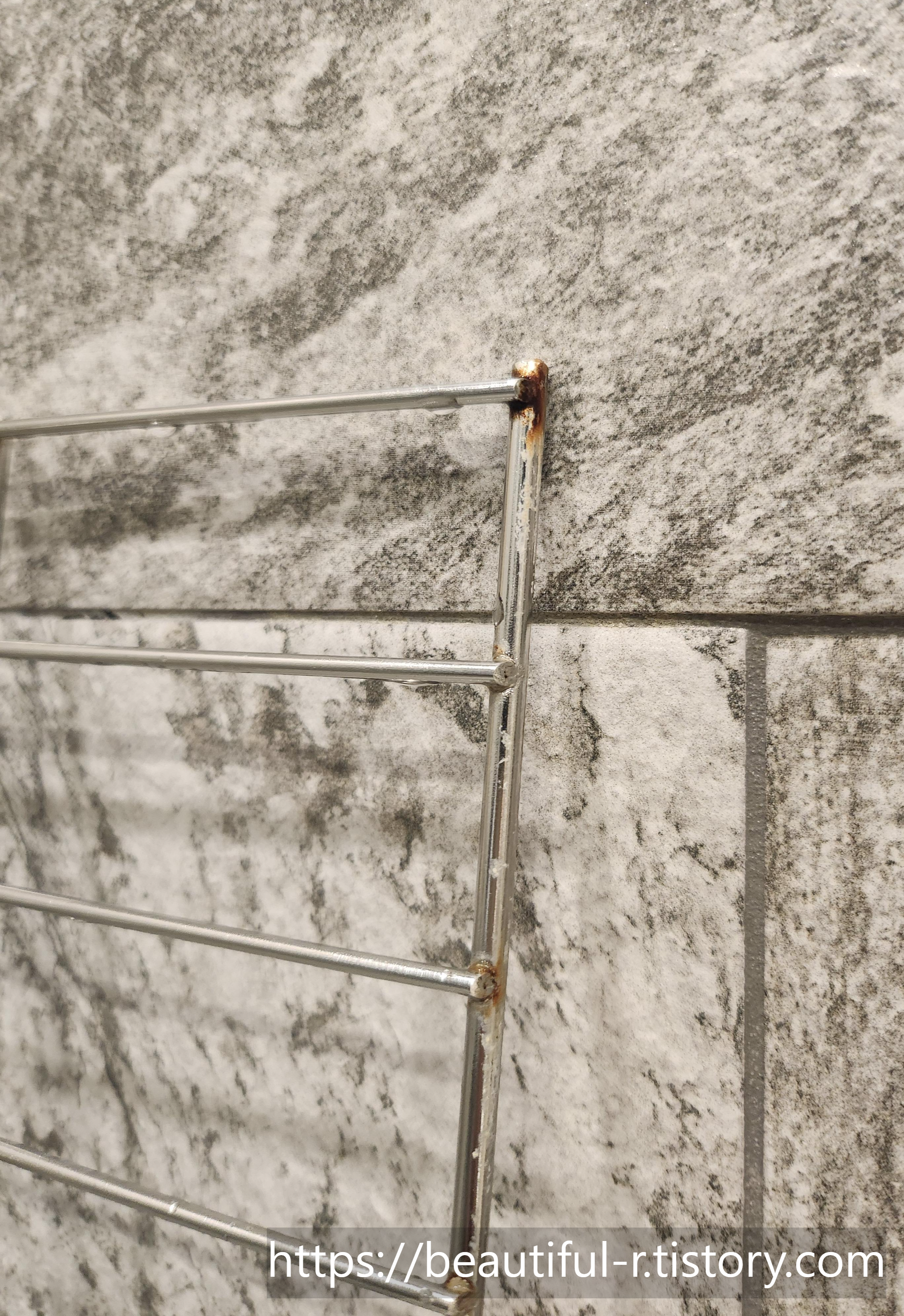저희 집은 싱크대에 올려두고 쓰는 식기건조대와 싱크대 상부장에 부착해서 쓰는 식기건조대 두 개를 사용하고 있어요. 싱크대에서 사용하는 건조대는 물때만 꼈는데 상부장 건조대는 중간중간 녹이 슬었더라고요.