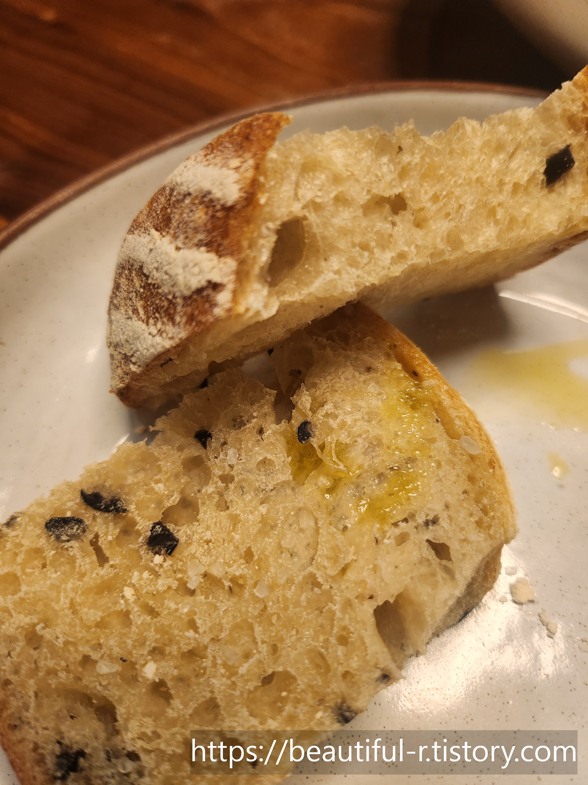주문하고 나니 식전빵을 제공해주셨어요. 배가 많이 고팠는데 식전빵으로 배고픔을 달랬어요.