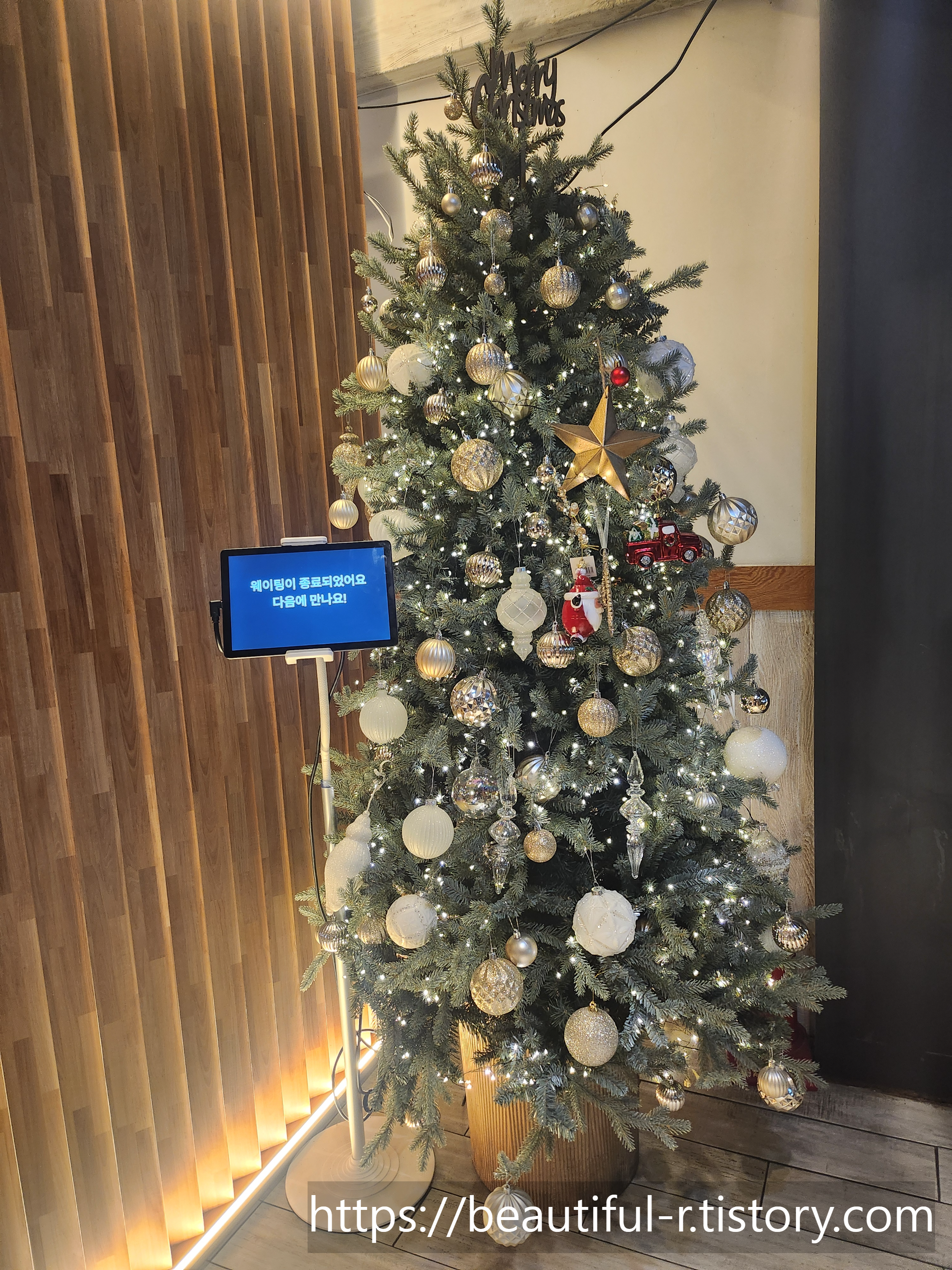 식당 앞 연말 분위기를 한껏 내주고 있는 트리가 정말 예뻤어요~